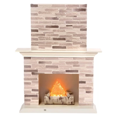- Fireplace has working lights and sounds!
